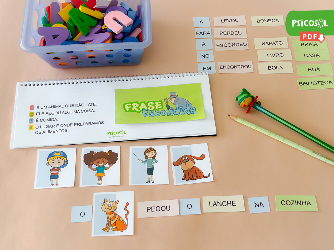 Hoje, eu trouxe como sugestão o jogo “Frase Escondida”, uma proposta muito rica em possibilidades! Vamos ver?